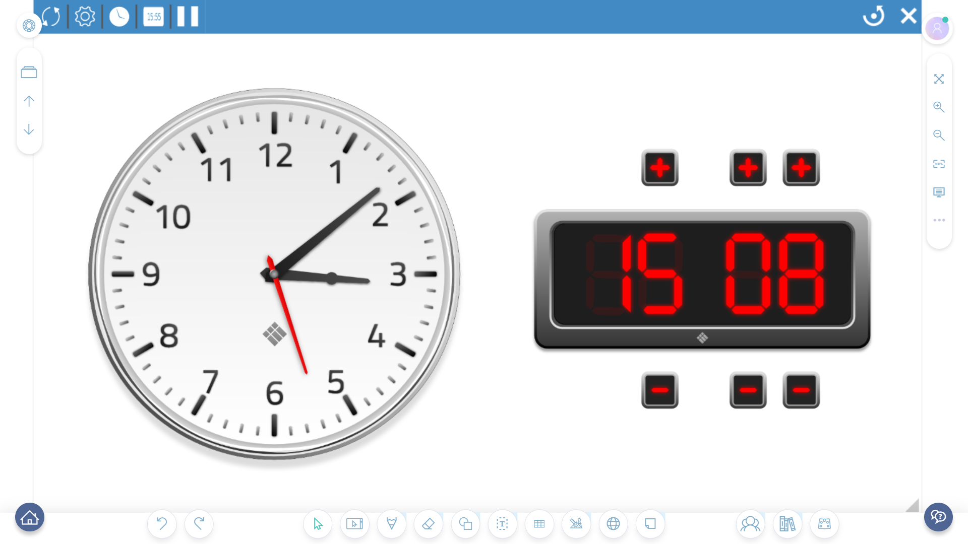 Na de inleiding gaan de leerlingen aan de slag met zowel een analoge als een digitale klok. Met deze app kunnen ze de wijzers van de analoge klok verslepen én de getallen op de digitale klok aanpassen.